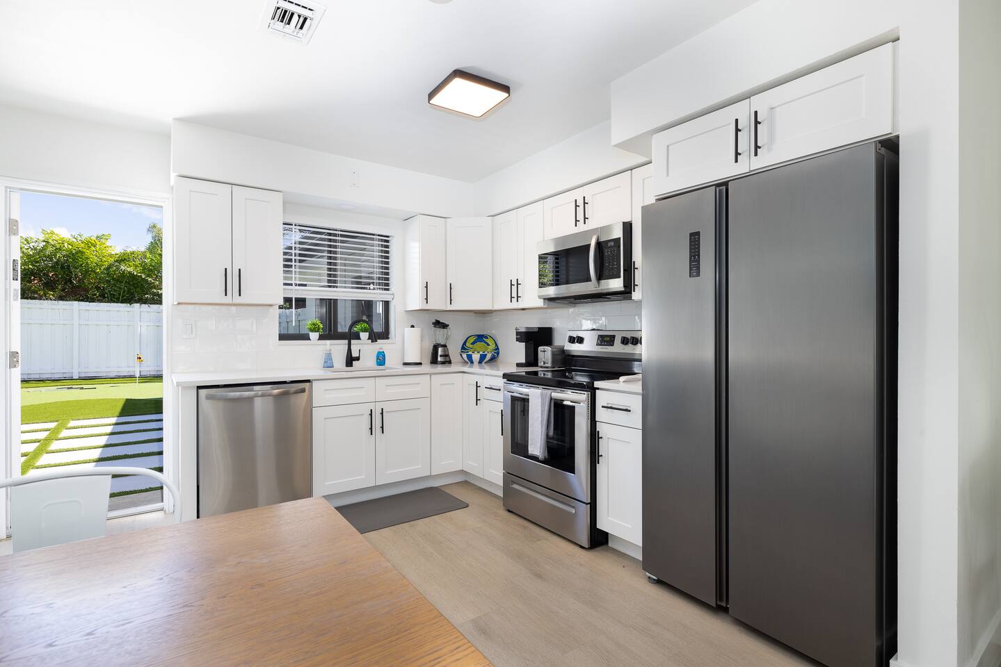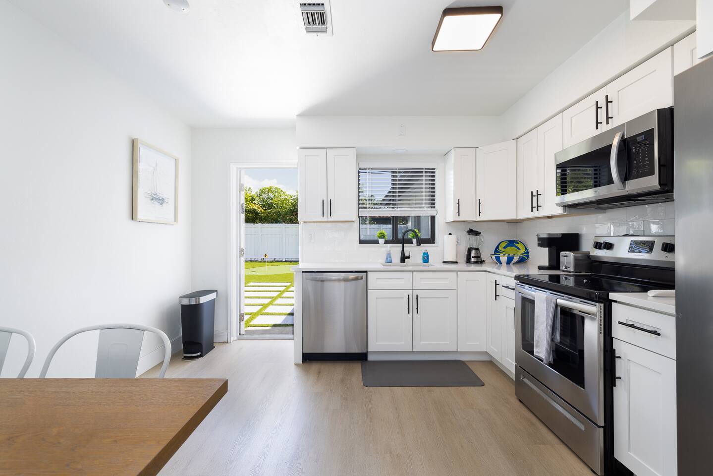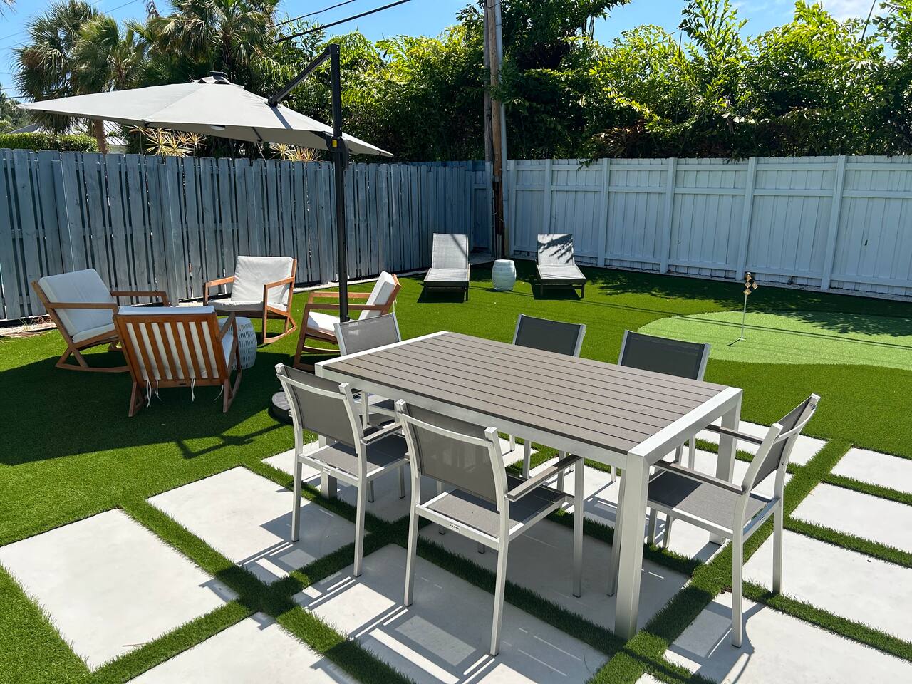 Completely updated, inside and out. Brand new 1,500 square foot PRIVATE backyard with patio, putting green, and BBQ Grill. Tastefully designed interior with fully equipped kitchen, 2 bed, 2 bath, 2 parking spaces. Large flat screen smart TV and WiFi. Very close to the beach and around the corner from tons of restaurants, shopping, and entertainment (Target and Publix are a short walk). Beach is 1.3 miles away. Complimentary use of beach chairs and umbrella (please request in advance).