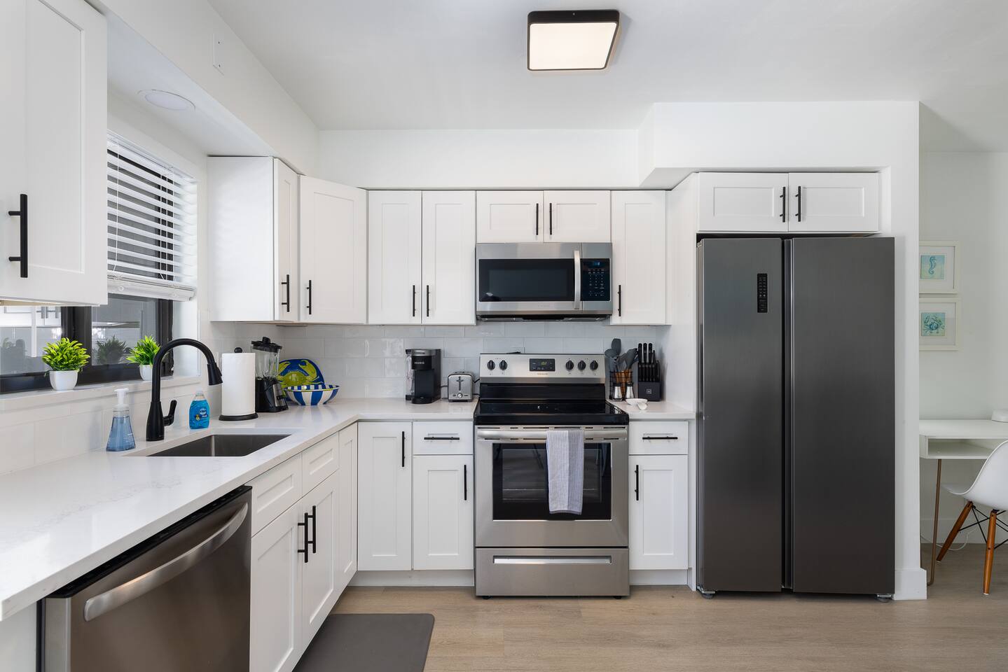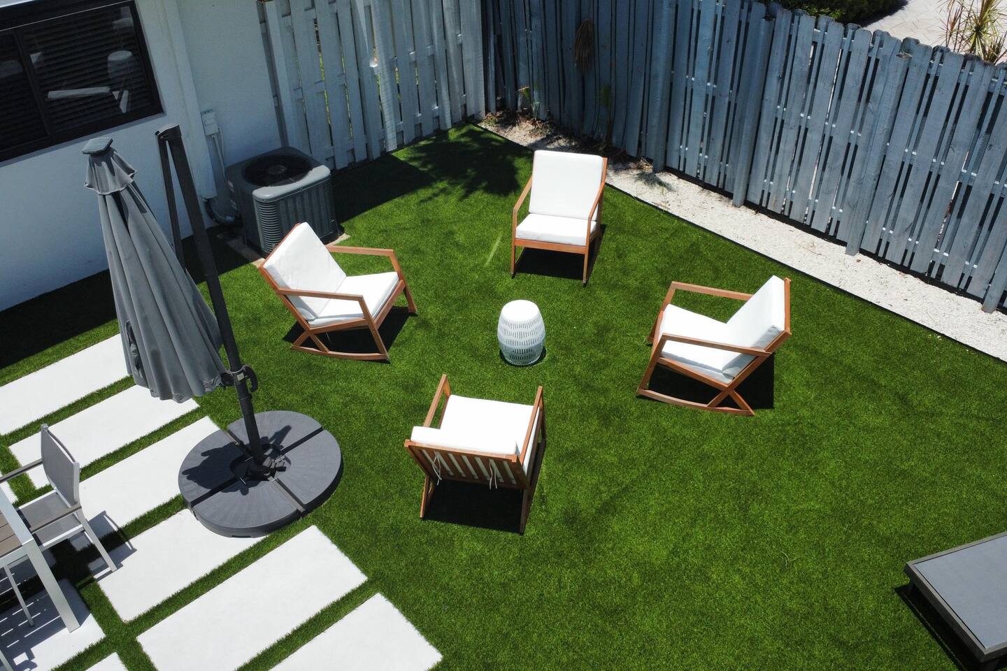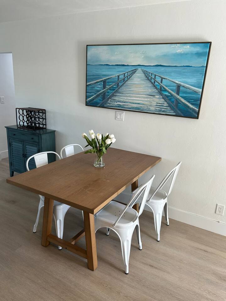 Completely updated, inside and out. Brand new 1,500 square foot PRIVATE backyard with patio, putting green, and BBQ Grill. Tastefully designed interior with fully equipped kitchen, 2 bed, 2 bath, 2 parking spaces. Large flat screen smart TV and WiFi. Very close to the beach and around the corner from tons of restaurants, shopping, and entertainment (Target and Publix are a short walk). Beach is 1.3 miles away. Complimentary use of beach chairs and umbrella (please request in advance).