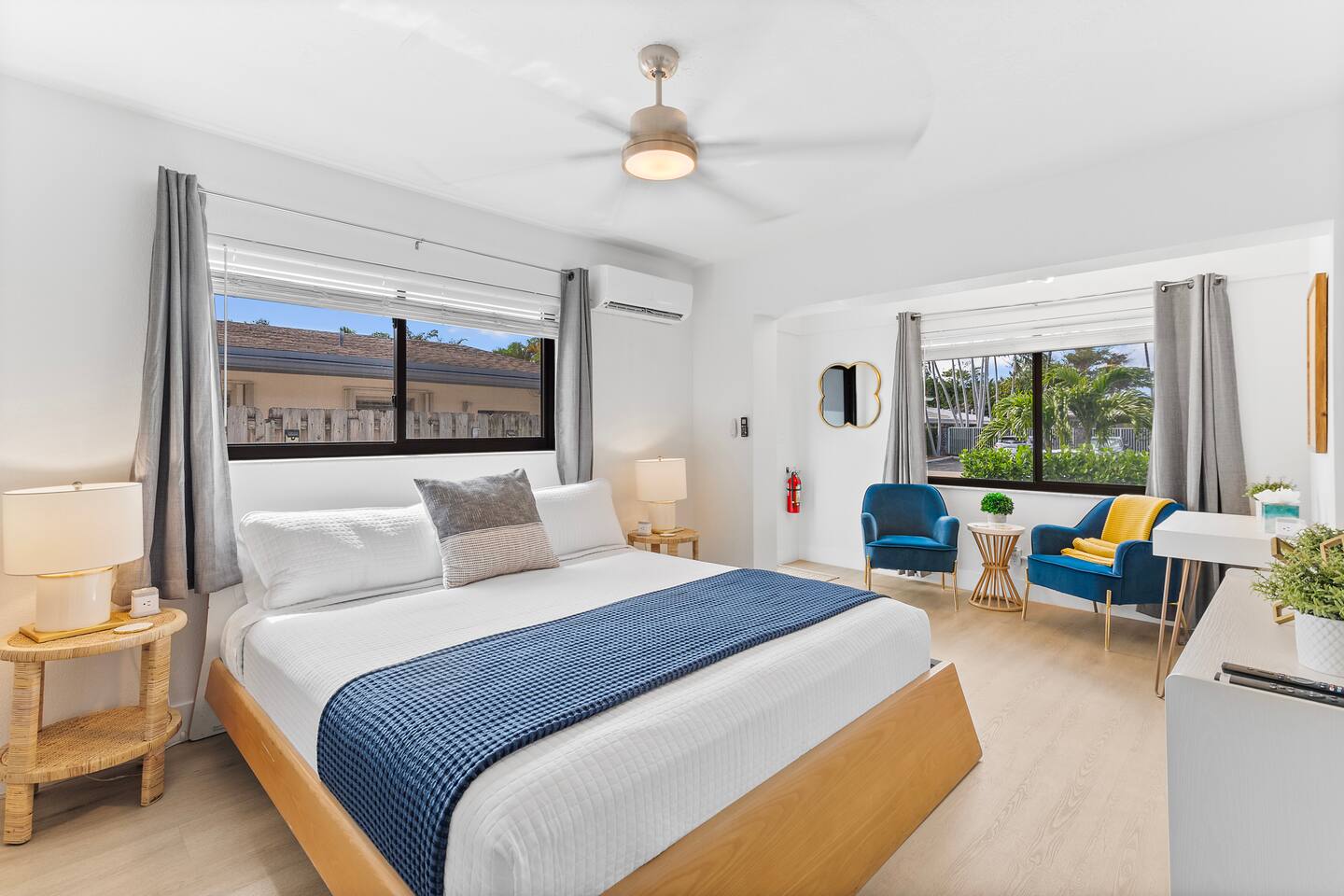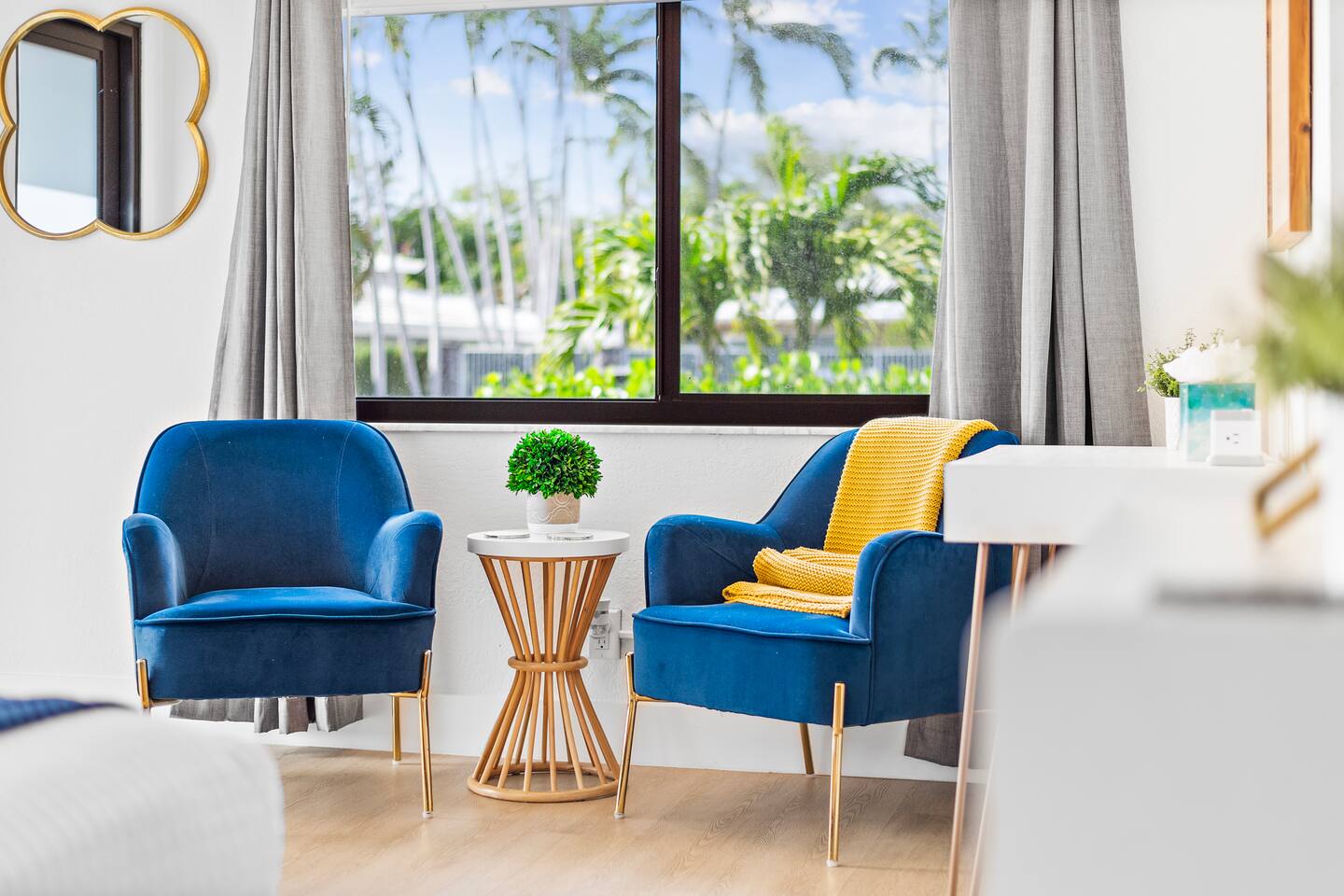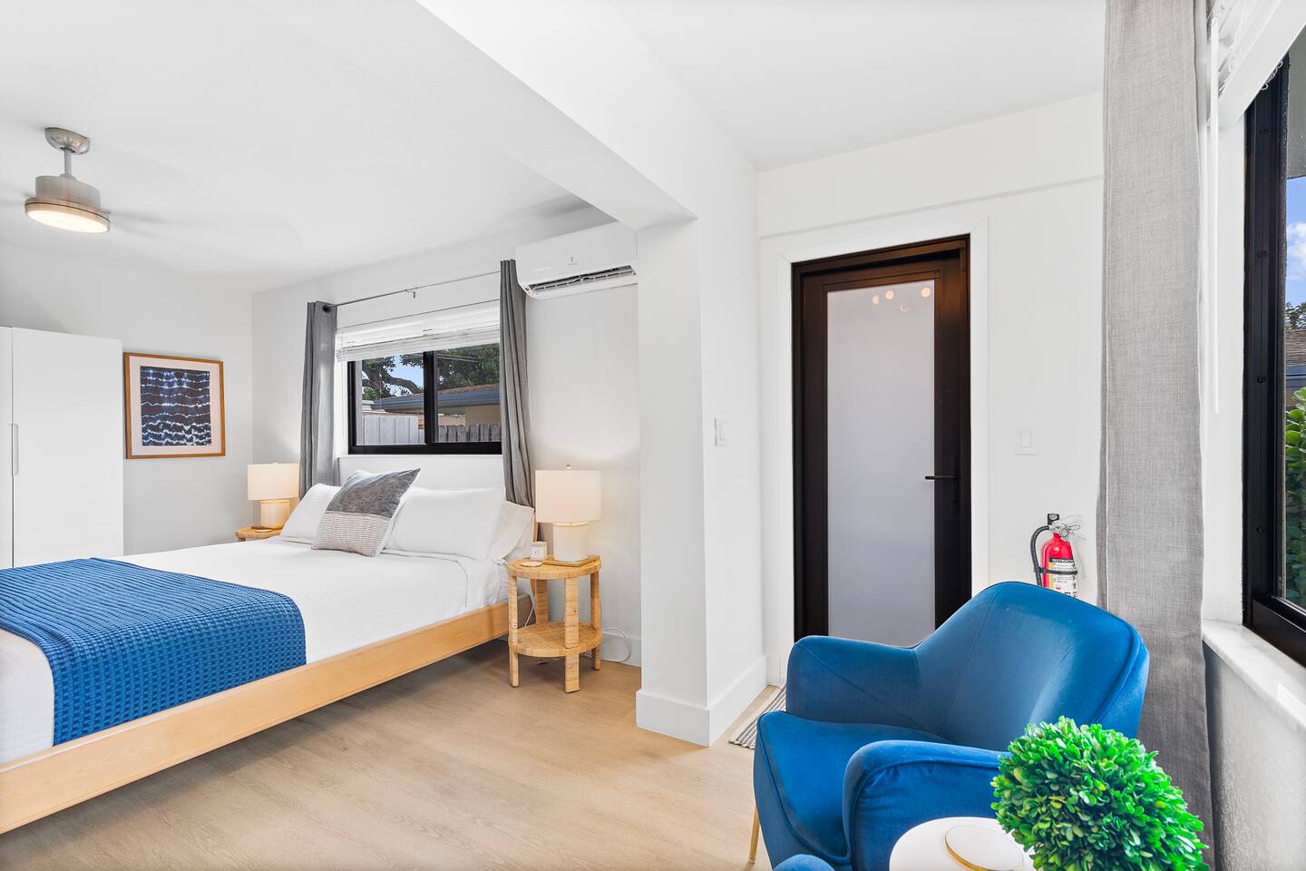 Enjoy a stylish experience at this centrally-located efficiently unit (PRIVATE ENTRANCE WITH KING BED) with tasteful furnishing and tons of natural light. Unit has kitchenette with Fridge, toaster, microwave, coffee maker. Outside patio with high top table perfect for relaxing. Close to restaurants, shopping, and plenty of public beaches. Complimentary use of beach chairs and umbrella (please request in advance).