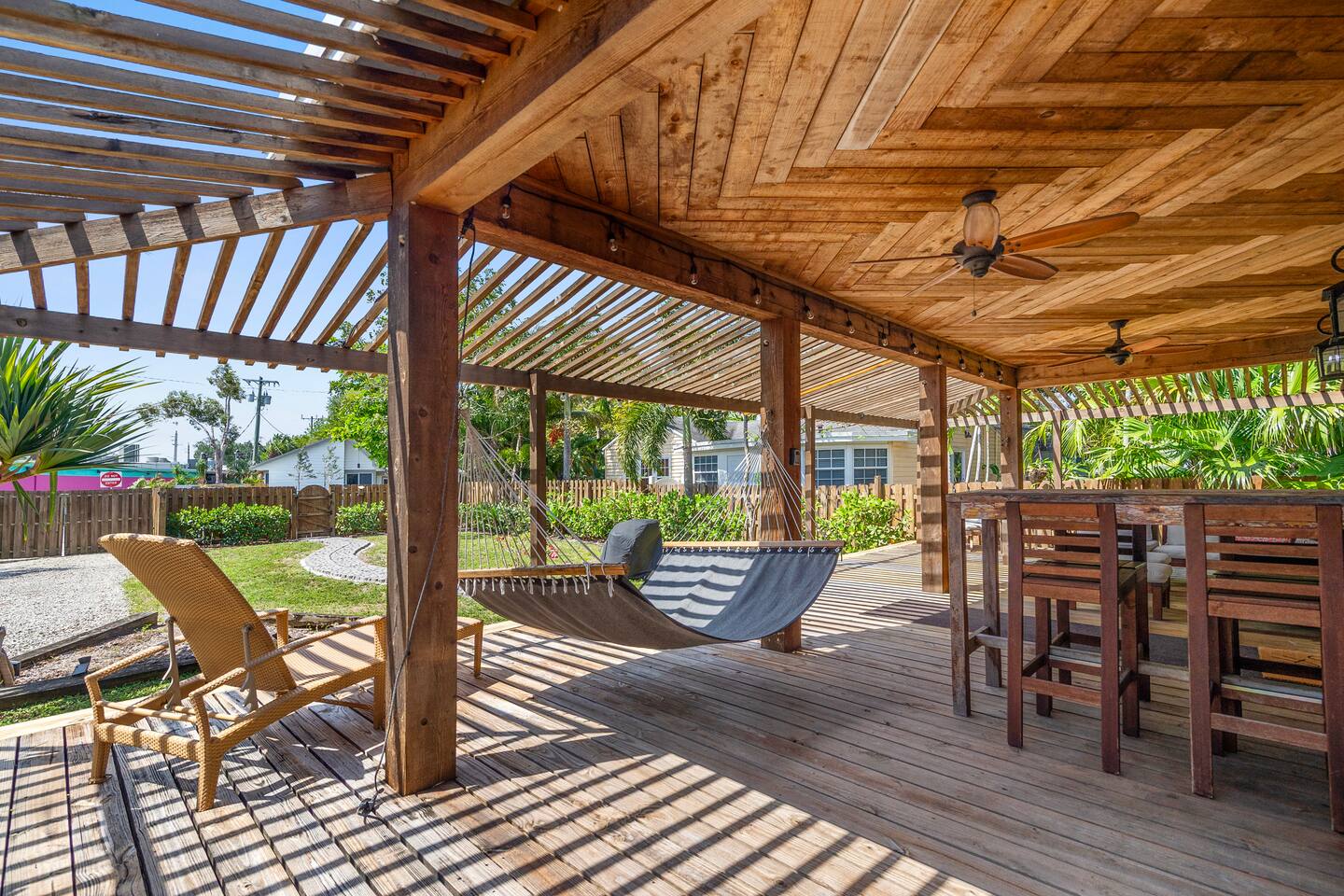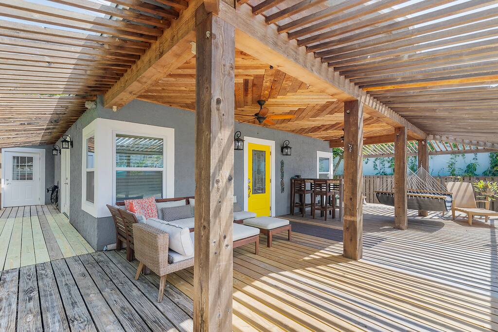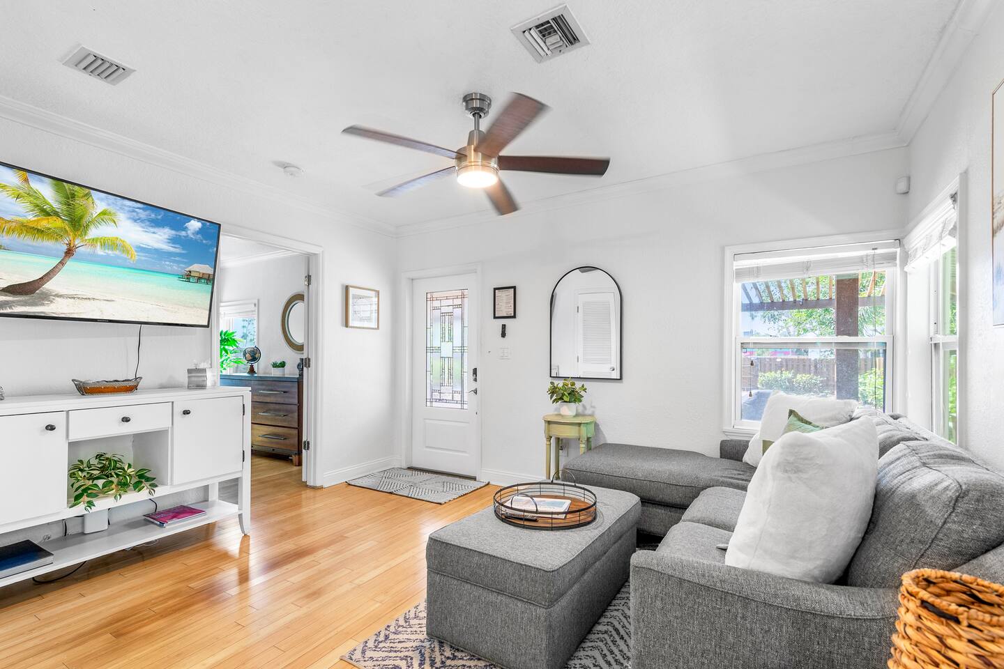 Walk out the front gate and you are literally 25 feet from Wilton Drive. This single family home with huge, relaxing front porch and large yard. Relax on the outdoor sectional or 2 hammocks. 2 full bedrooms and bathroom, renovated kitchen, washer and dryer, flat screen TV, and high speed internet. The perfect rental for your true Florida vacation. Beach gear included!